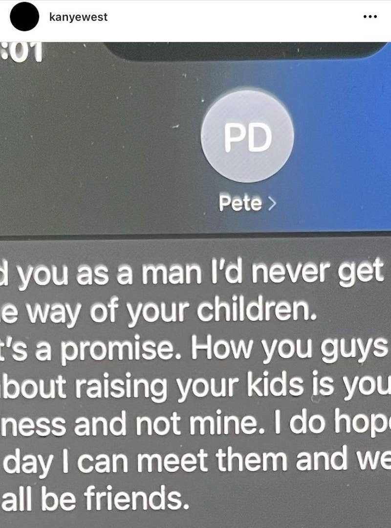 In case you weren’t aware, the conflict between Pete and Ye stems from the fact that Pete is currently dating Kim, whom Ye has spent months publicly trying to get back together with.