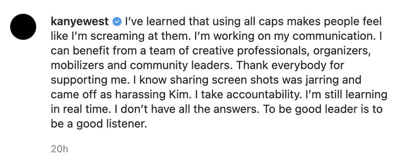 As I’m sure you’ve seen, the dispute reached new heights last weekend when the Donda rapper was called out for harassing Kim and Pete in a string of since-deleted Instagram posts, including several where he leaked their private text messages.